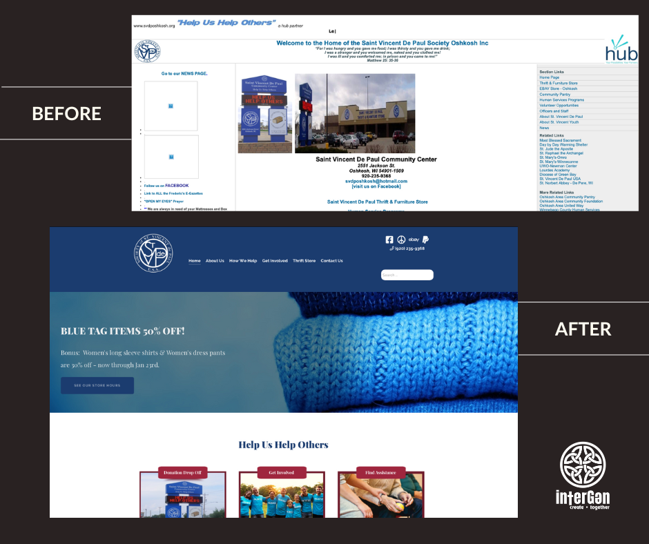 St. Vincent de Paul Oshkosh (SVdP) has been a cornerstone of support in the Oshkosh, Omro, and Winneconne communities for over 55 years, offering assistance to individuals and families in need. To enhance their outreach and better serve both those seeking assistance and supporters, SVdP partnered with InterGen for a comprehensive website redesign under the Silver Website Design Package.